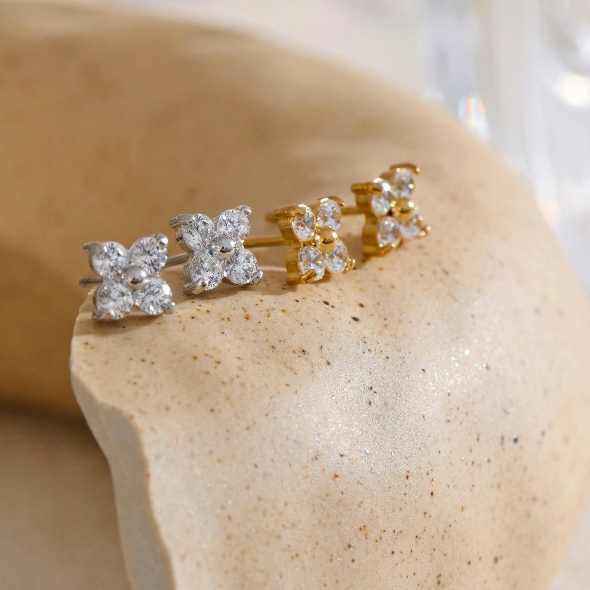 Cubic Zirconia Flower Stud Earrings