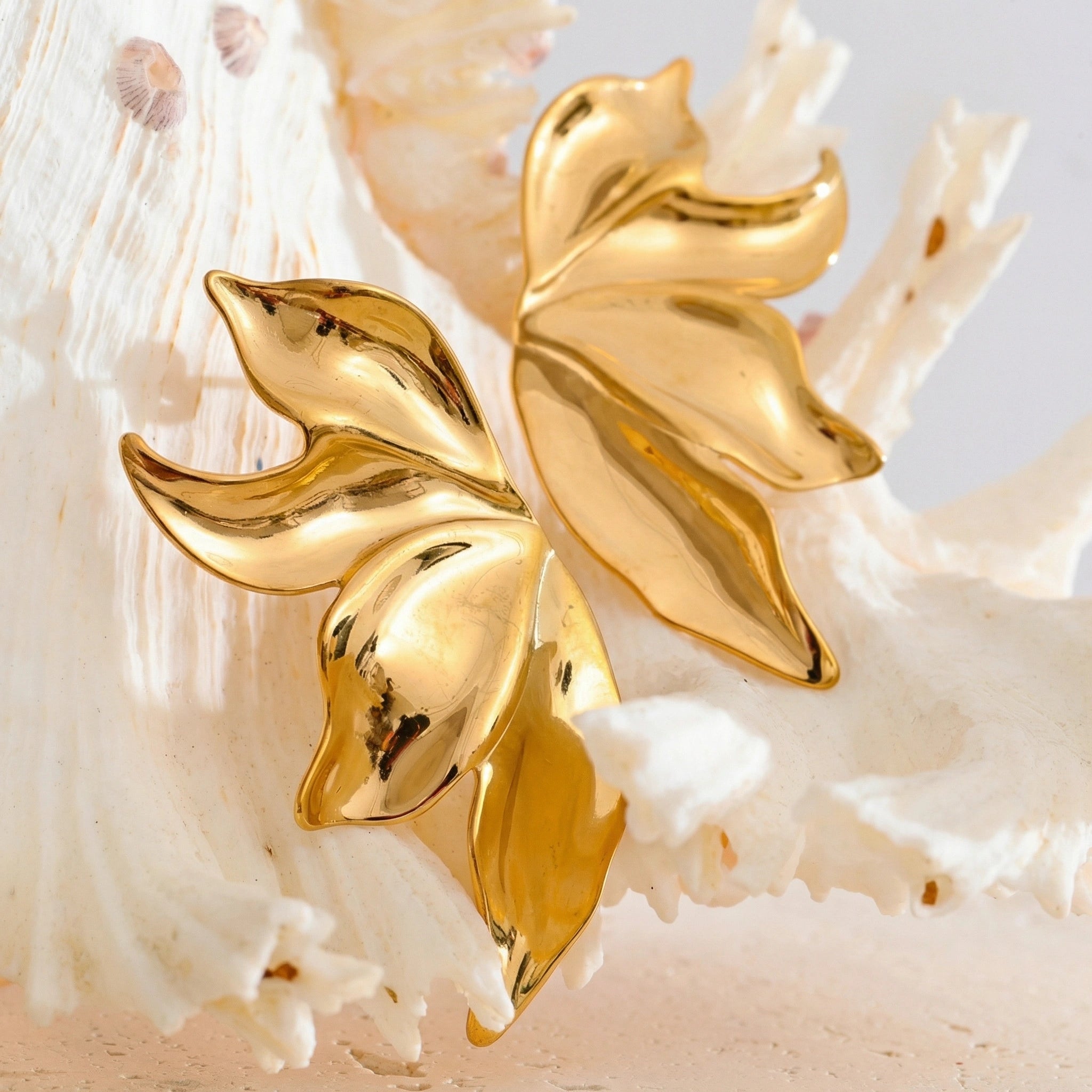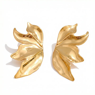 Sculptural Metal Flower Stainless Steel Stud Earrings