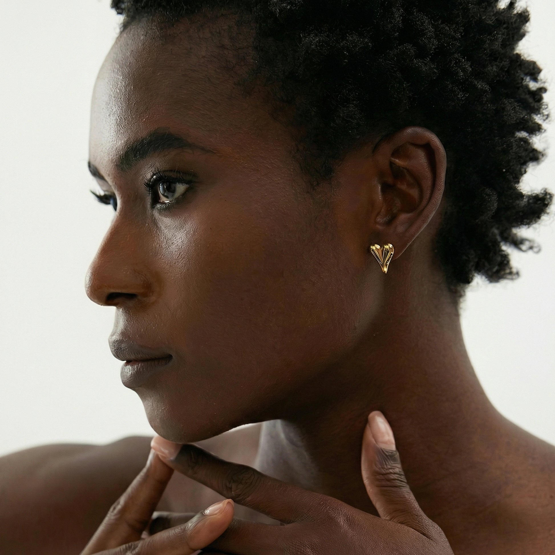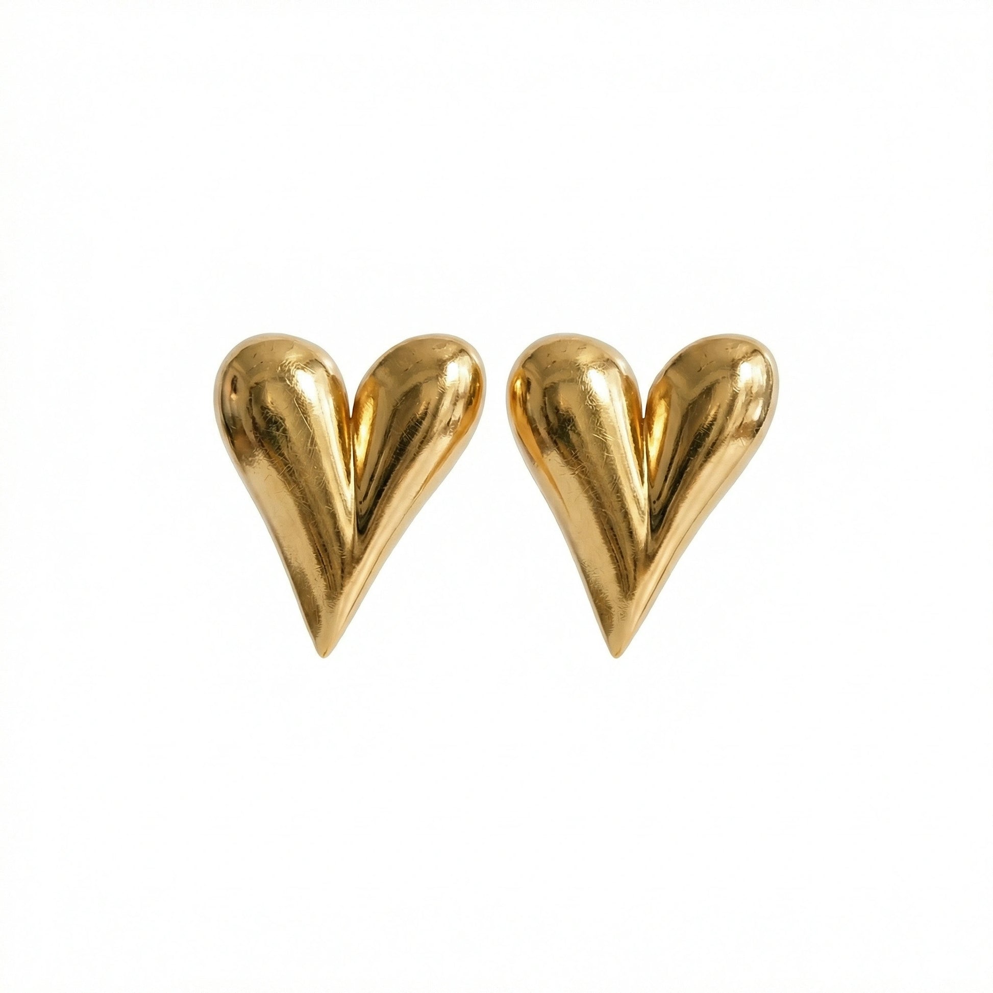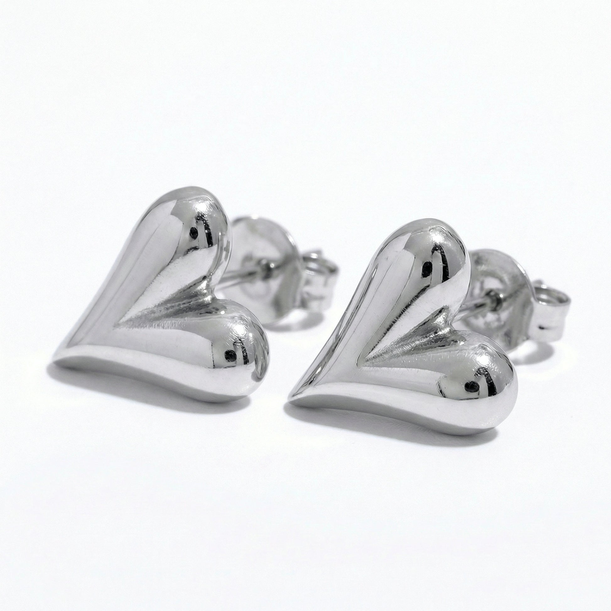 Smooth heart-shaped charms paired with compact huggie hoops create a clean and modern silhouette. A versatile design that balances softness with a solid polished finish for everyday wear