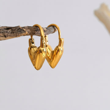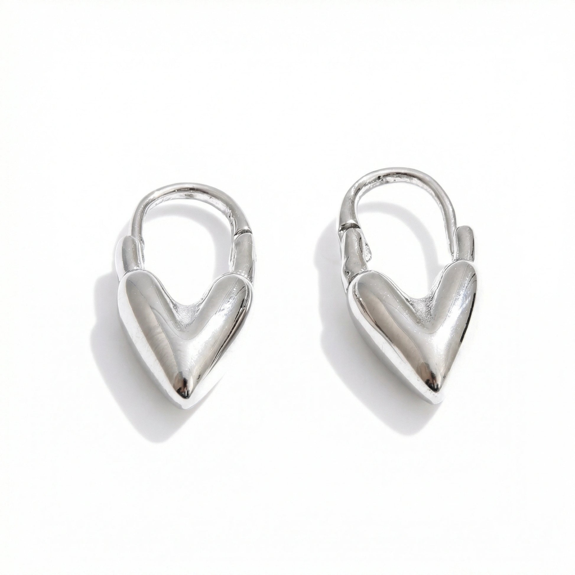 Minimal heart-shaped hoop earrings with a smooth, sculpted surface and polished finish. Compact and lightweight with a clean silhouette, designed for everyday wear while adding a subtle romantic accent.
