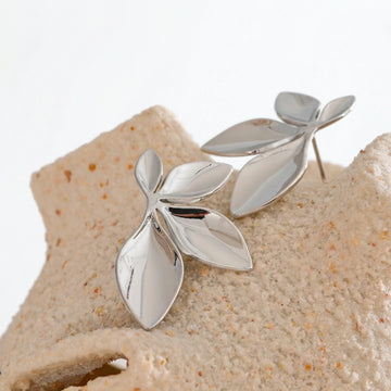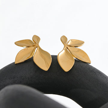 Sculptural leaf-inspired stud earrings with a smooth polished surface and organic form. A bold yet refined design that adds texture and shine while remaining comfortable for everyday wear.