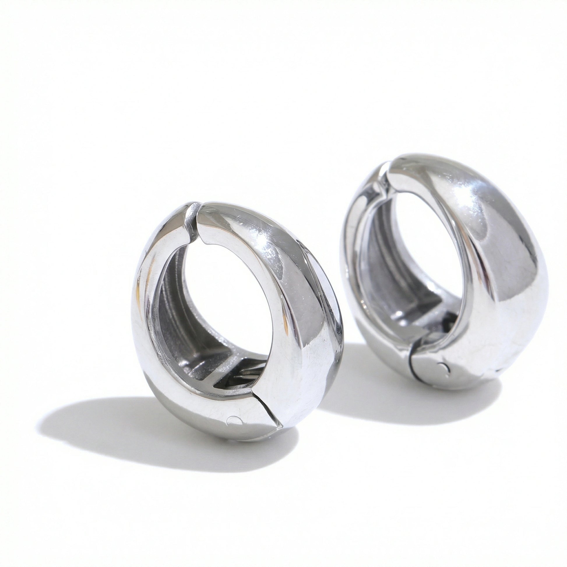 Smooth, rounded ear clip earrings with a clean, minimal silhouette and polished metal finish. Designed for comfortable daily wear without piercing. Compact proportions and balanced weight make them suitable for effortless, everyday styling.