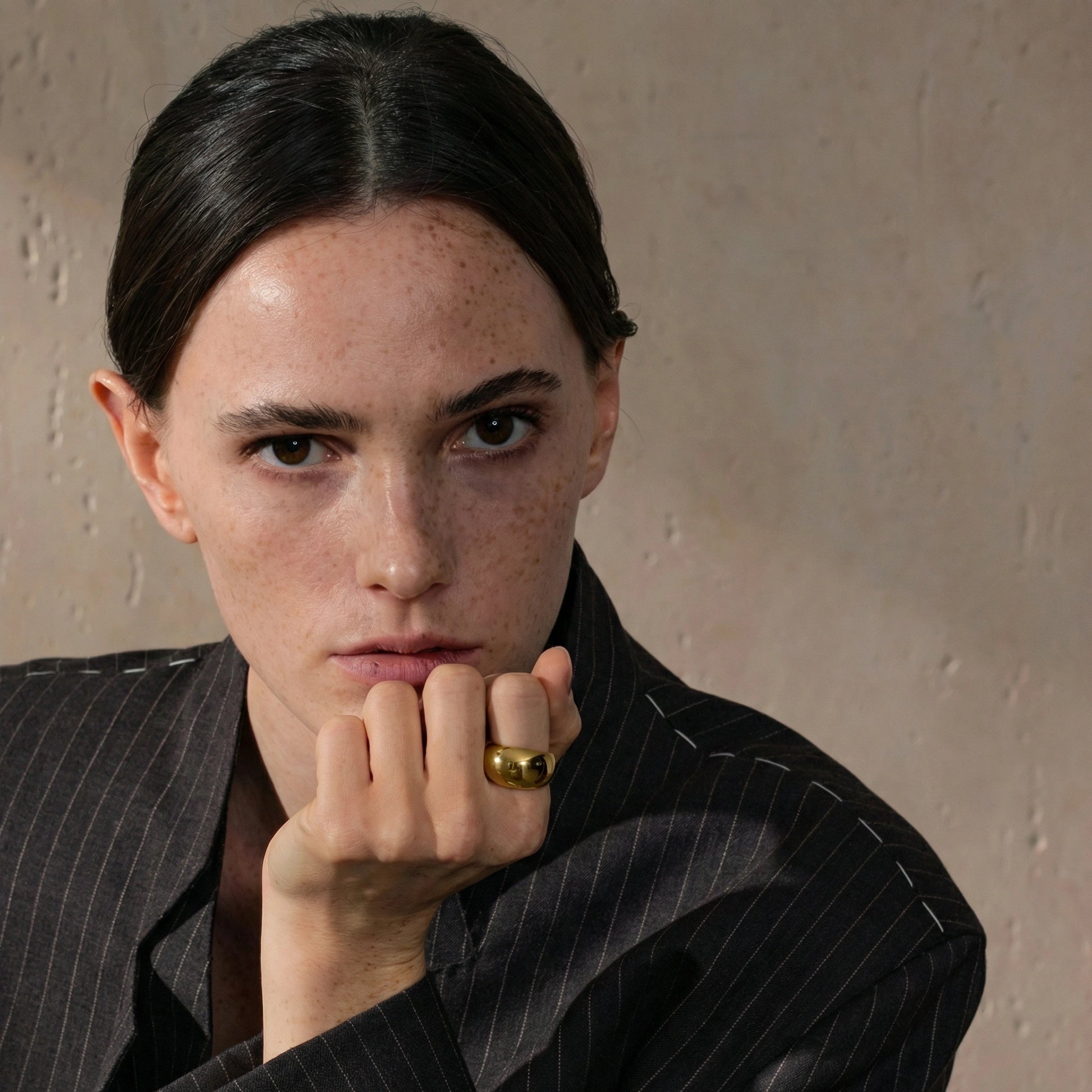 Bold yet clean chunky ring with a smooth, high-gloss dome finish. Designed for everyday wear — minimal in form, confident in presence. A timeless piece that works effortlessly solo or stacked.