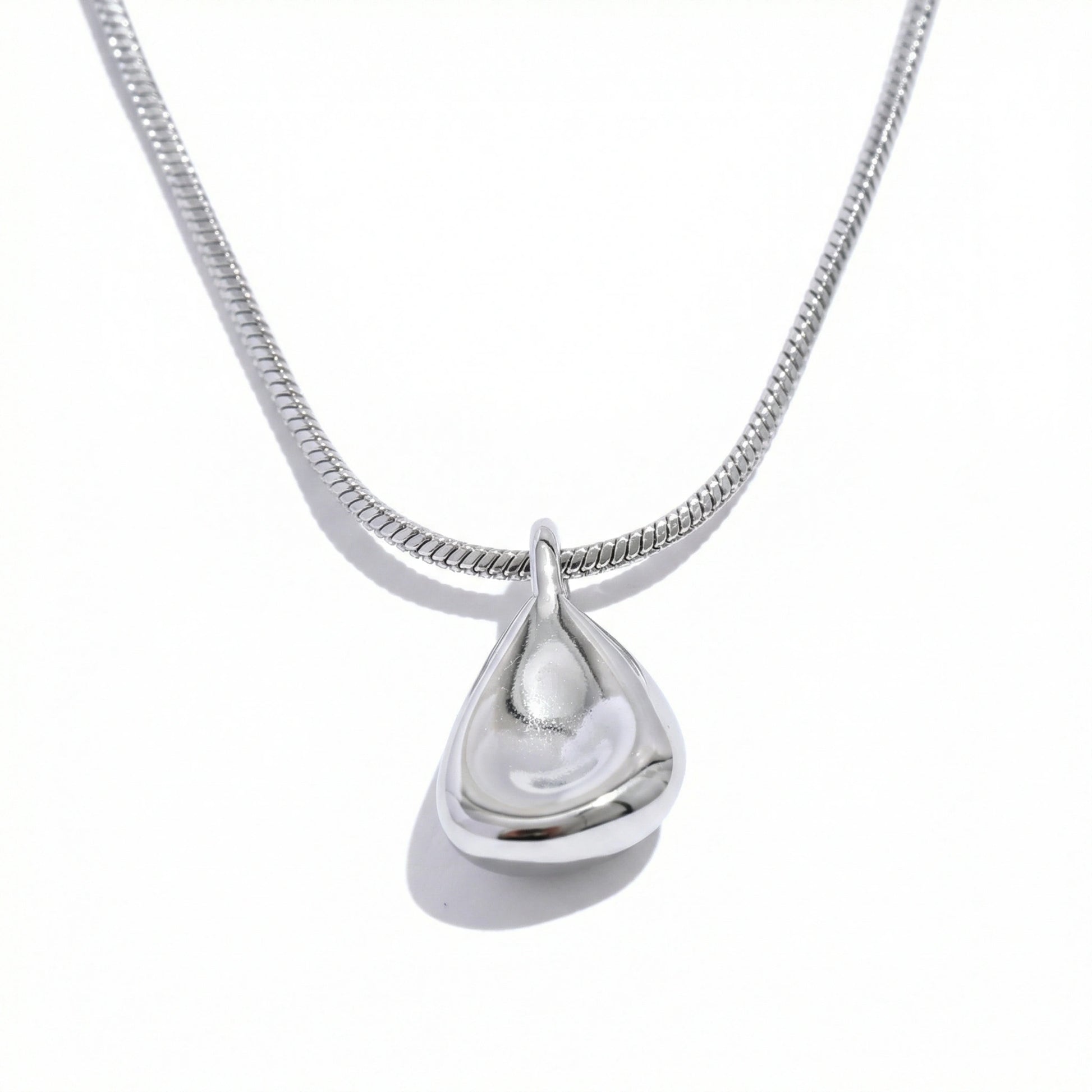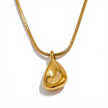 Sculptural teardrop pendant with a smooth, high-shine finish and clean geometric form. Minimal, modern, and designed for everyday wear — effortless worn solo or layered.