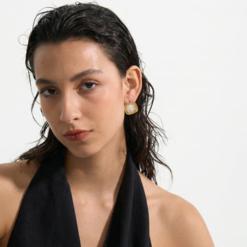 Square stud earrings combining a polished stainless steel frame with a smooth resin center. Designed with a bold geometric shape and glossy finish, offering a modern yet wearable statement. Distinctive but balanced, ideal for elevating everyday looks with a subtle pop of color.