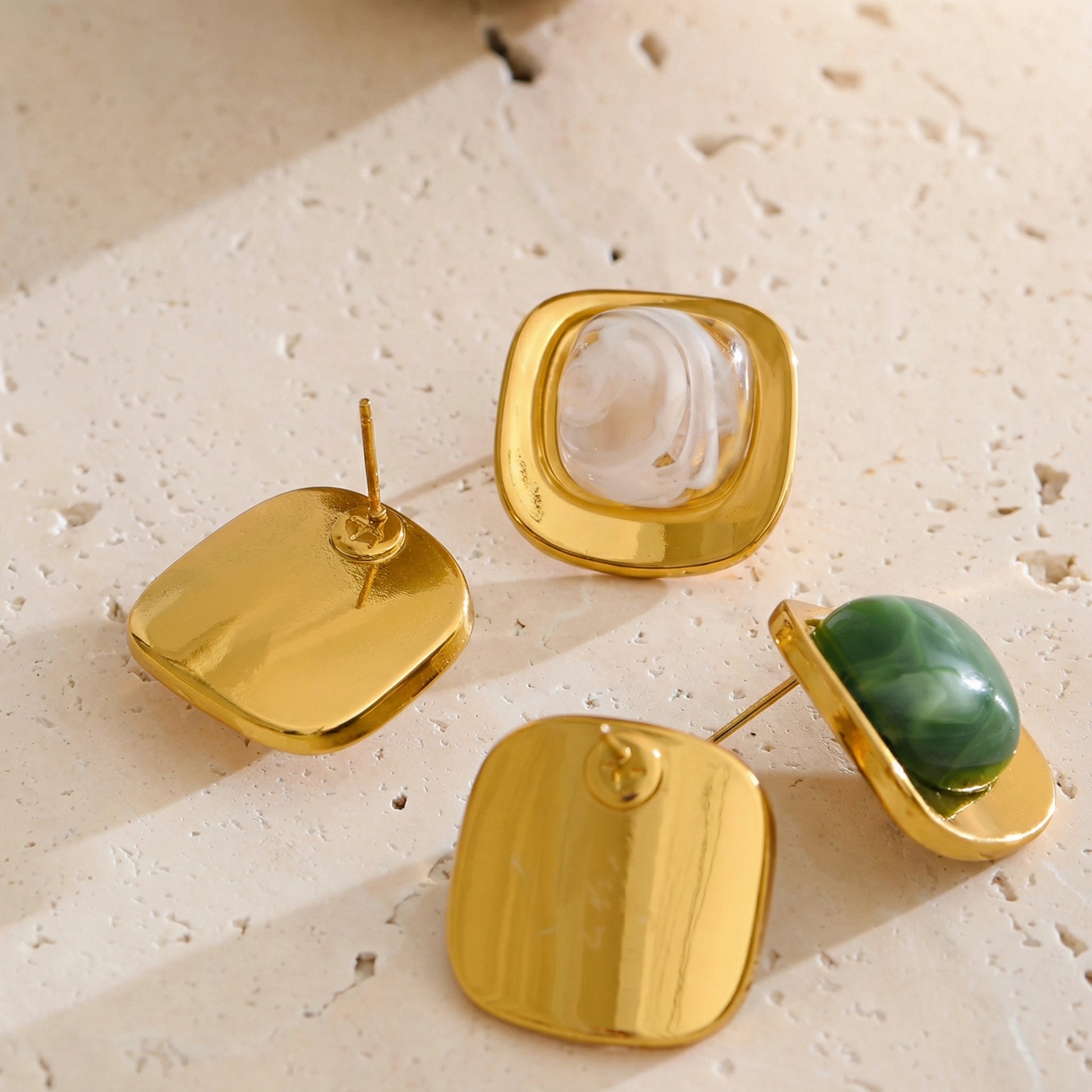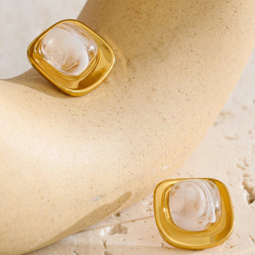 Square Resin Stainless Steel Stud Earrings
